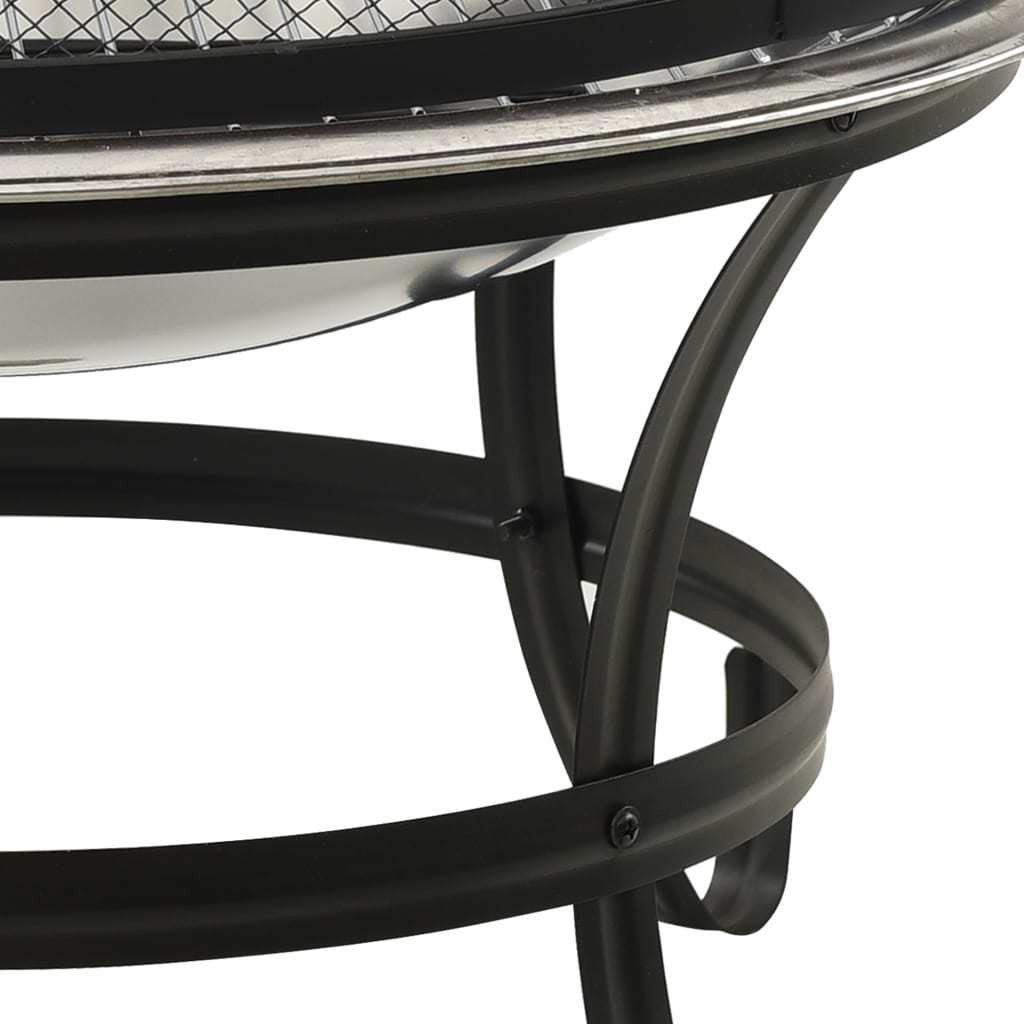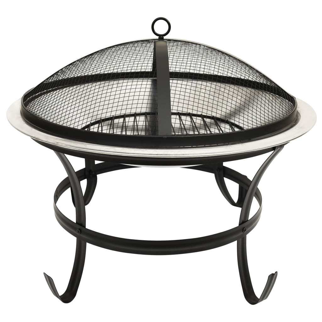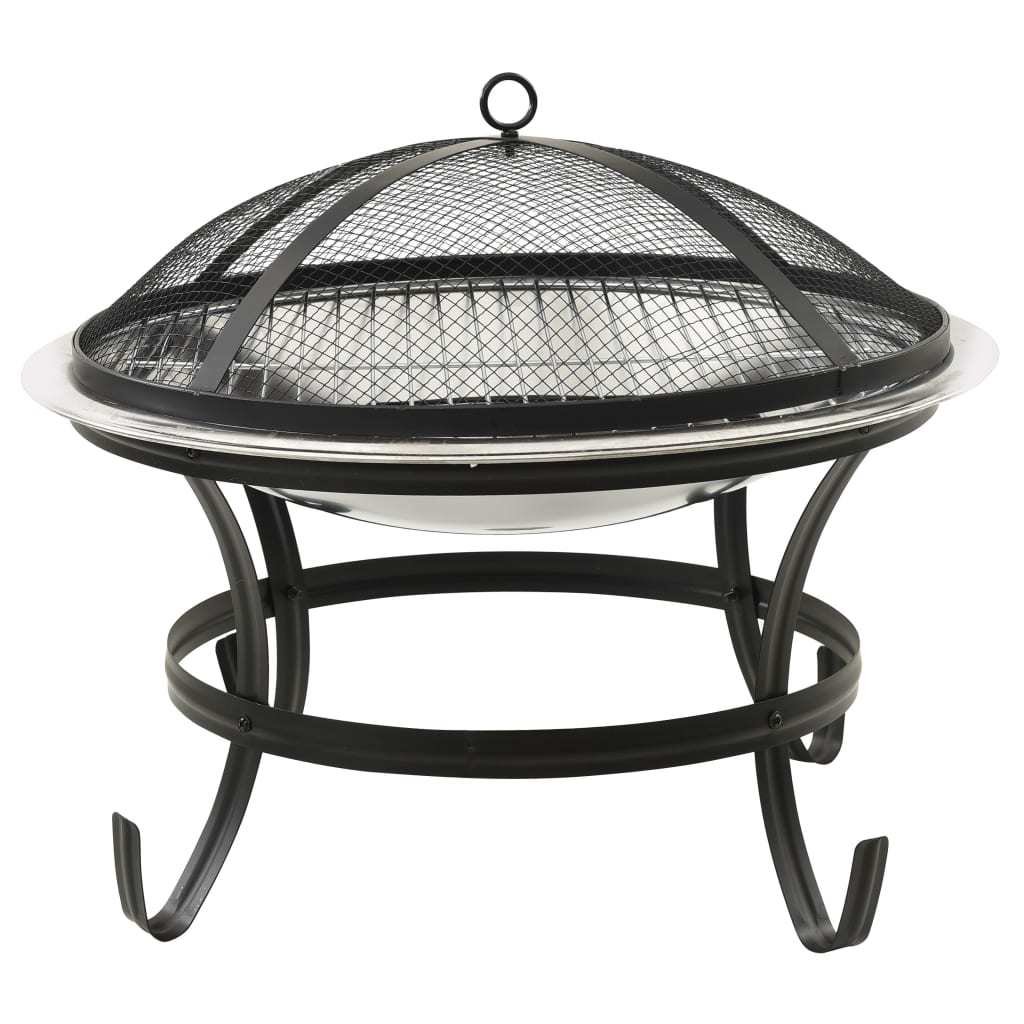 2-in-1 Fire Pit and BBQ with Poker 22"x22"x19.3" Stainless Steel - Silver