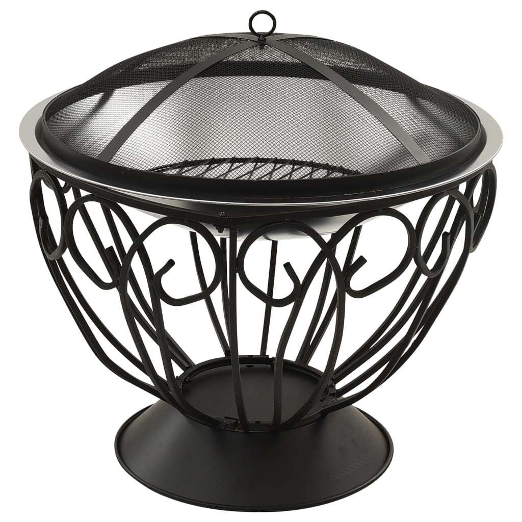 The fire pit, made of stainless steel, is excellent in absorbing and radiating heat. This fireplace features a large bowl, allowing for a large fire for you and your family to enjoy for hours. The mesh allows you to watch the burning fire, and encloses the fire for safety as well as preventing sparks and debris from flying out. Additionally, there is a convenient ring in the mesh cover so that you can carry it easily. The poker can be used for both removing the mesh cover and rearranging the logs. With the included cooking grid, you can even have a barbecue.