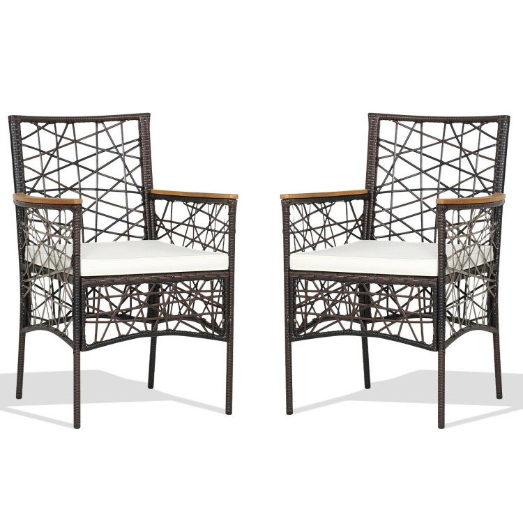 With hollow backrests, acacia wood armrests, soft cushions and wide seats, these patio bistro chairs are ergonomically designed for your upper body. Meanwhile, the all-weather PE rattan and rustproof steel frame make these dining armchairs durable and stable for outdoor use. So you can put them wherever you want, such as patio, backyard, poolside or porch, adding a great addition to your outdoors.