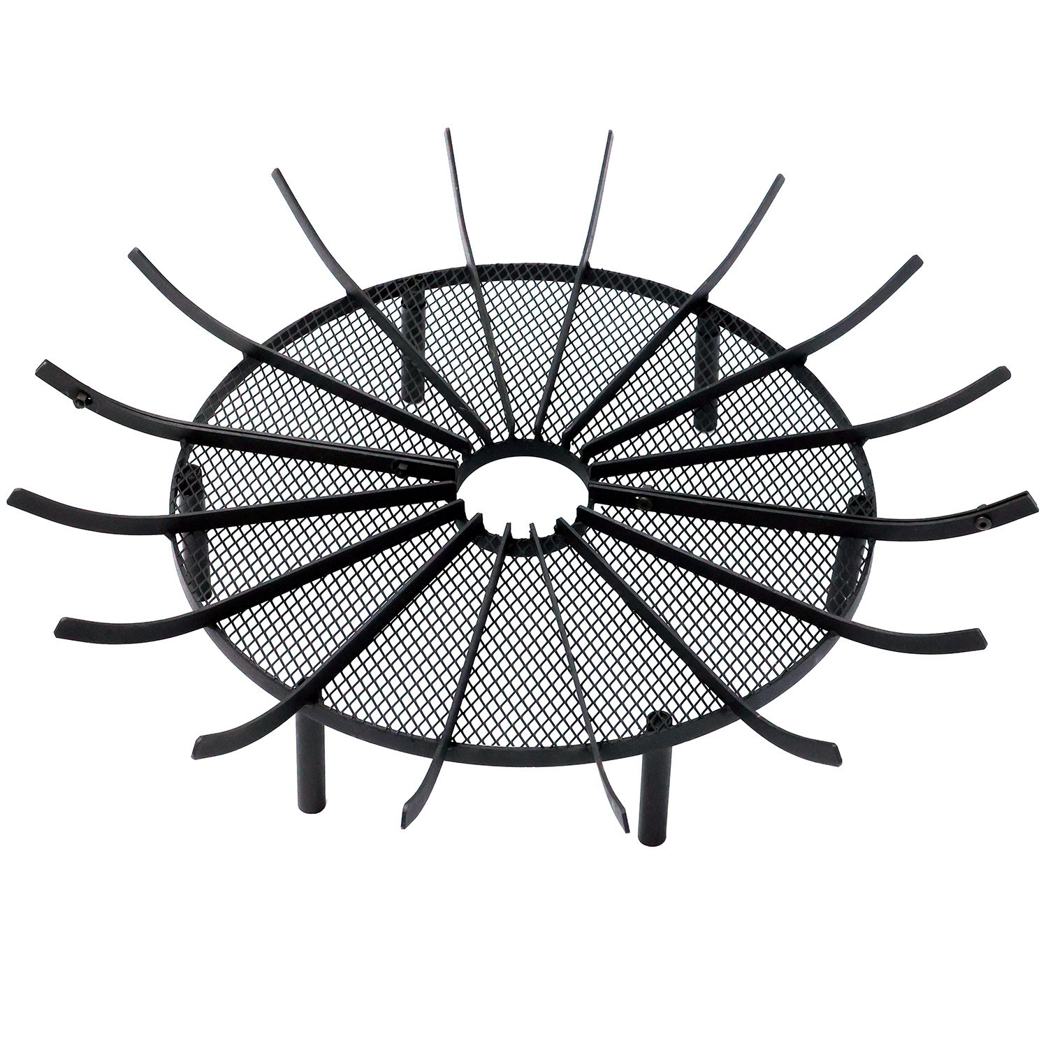 Dimension - Aoodor Firepit grate decorative measures 36 inch diameter x 7 inch high; 5 inch metal wire height from the ground. Raises the firewood from the chimney floor and hearth allowing for better air circulation. Makes it incredibly easy to start a fire and produces an ample amount of heat. Iron structure fireplace log holder rack will last a long time