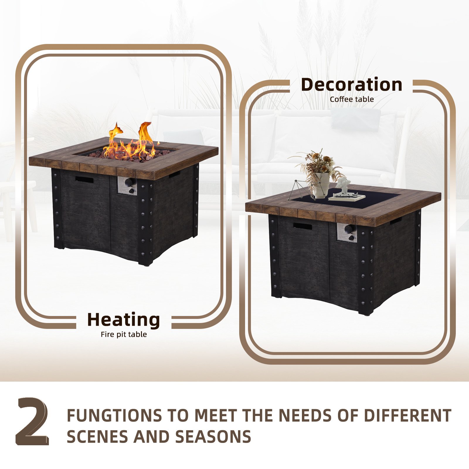 Multi-purpose: When the flame dances on the lava rocks, it is an excellent patio fire pit table to keep you warm and intoxicated; close the fire lid and surround the woodgrain table top, and it is a coffee table, convenient and versatile!