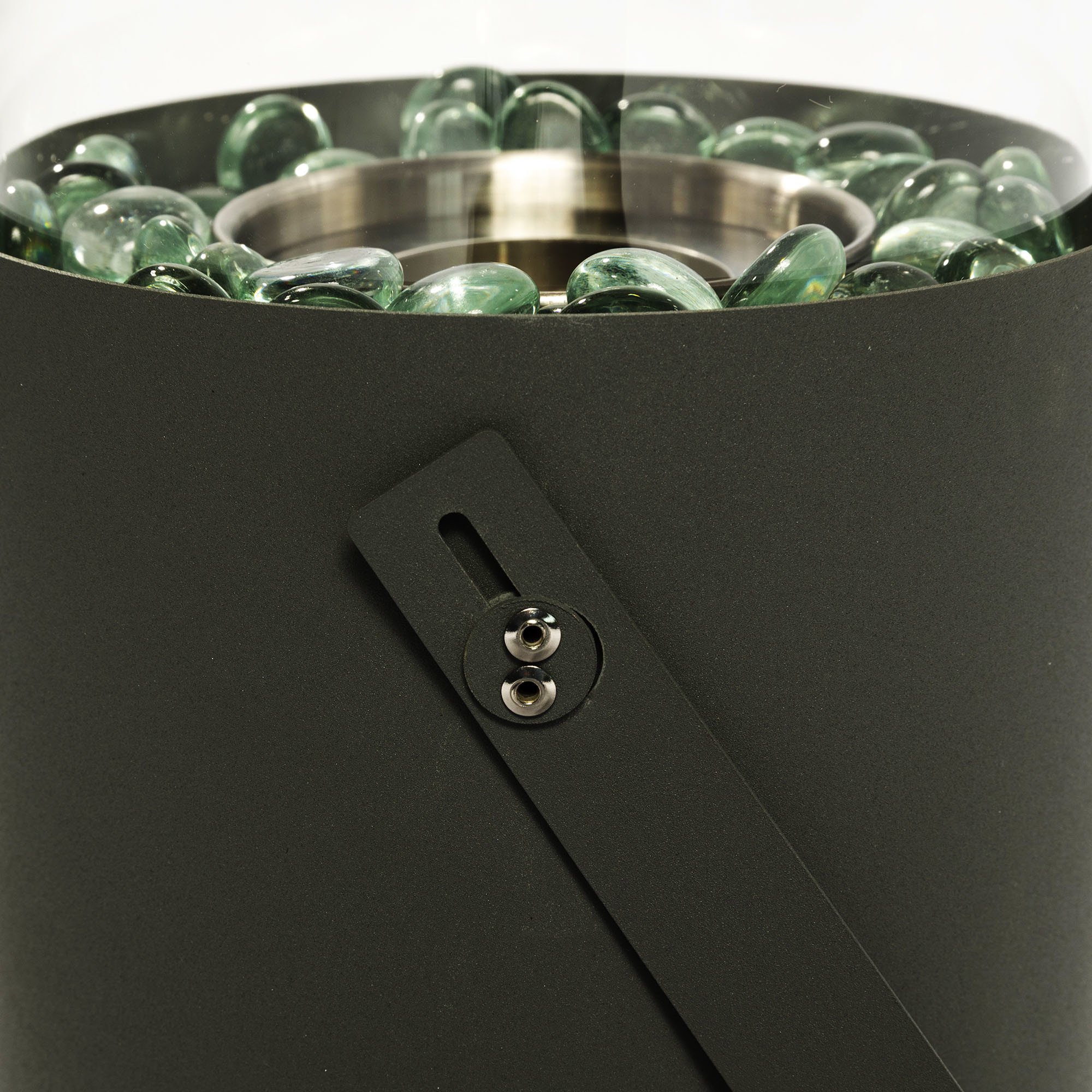 Indoor and Outdoor Portable Fire Pit, Bio-ethanol Fire Pit, Tabletop Fire Pit with Glass BeadsSteel Body with Glass Wind GuardStainless Steel Fire Pot,With Stainless Steel Fire Extinguishing CoverWith decorative glass beadsFuel: Bioethanol or gelHeat output: 3000BTU