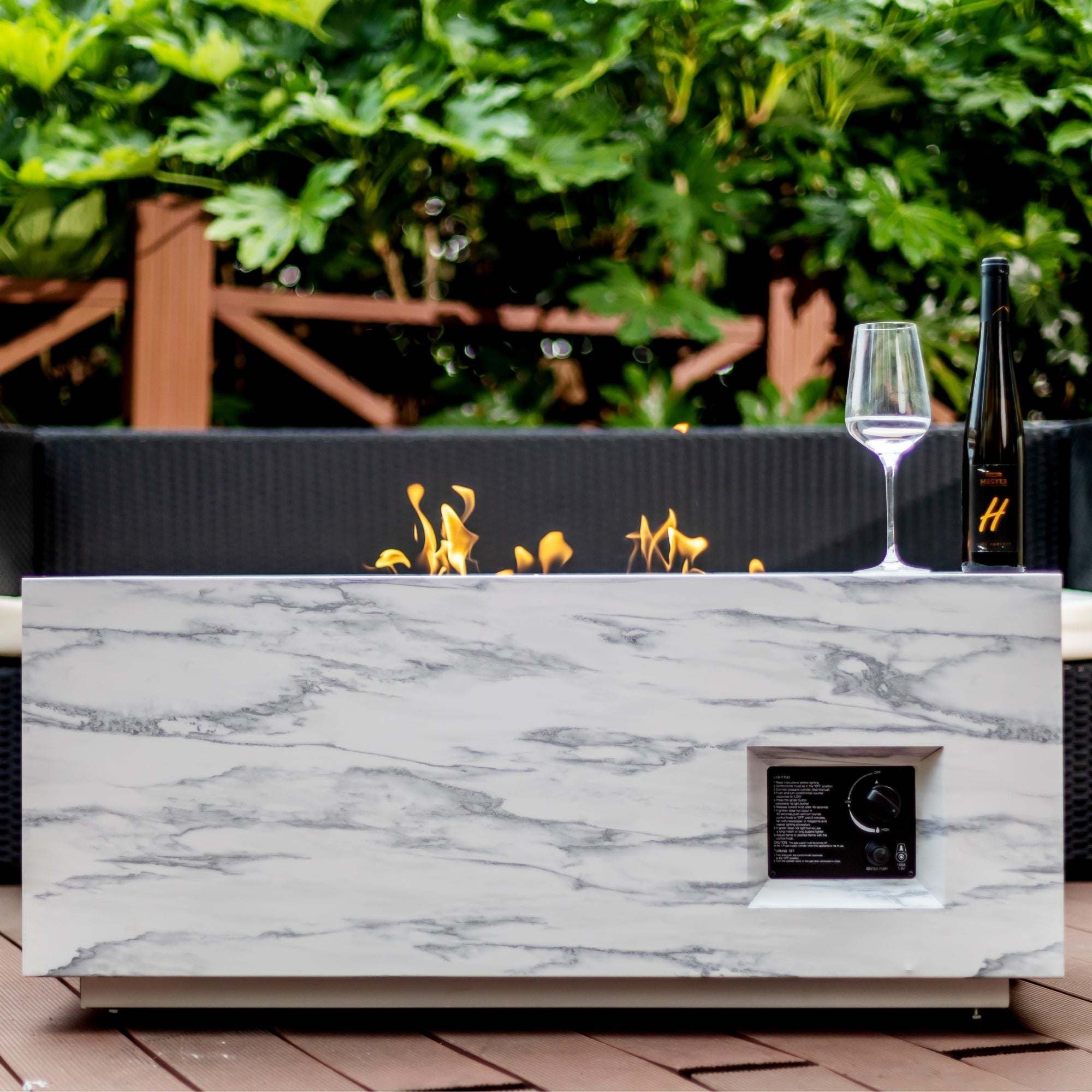 Outdoor 42" Rectangle Propane Fire Pit Table - white