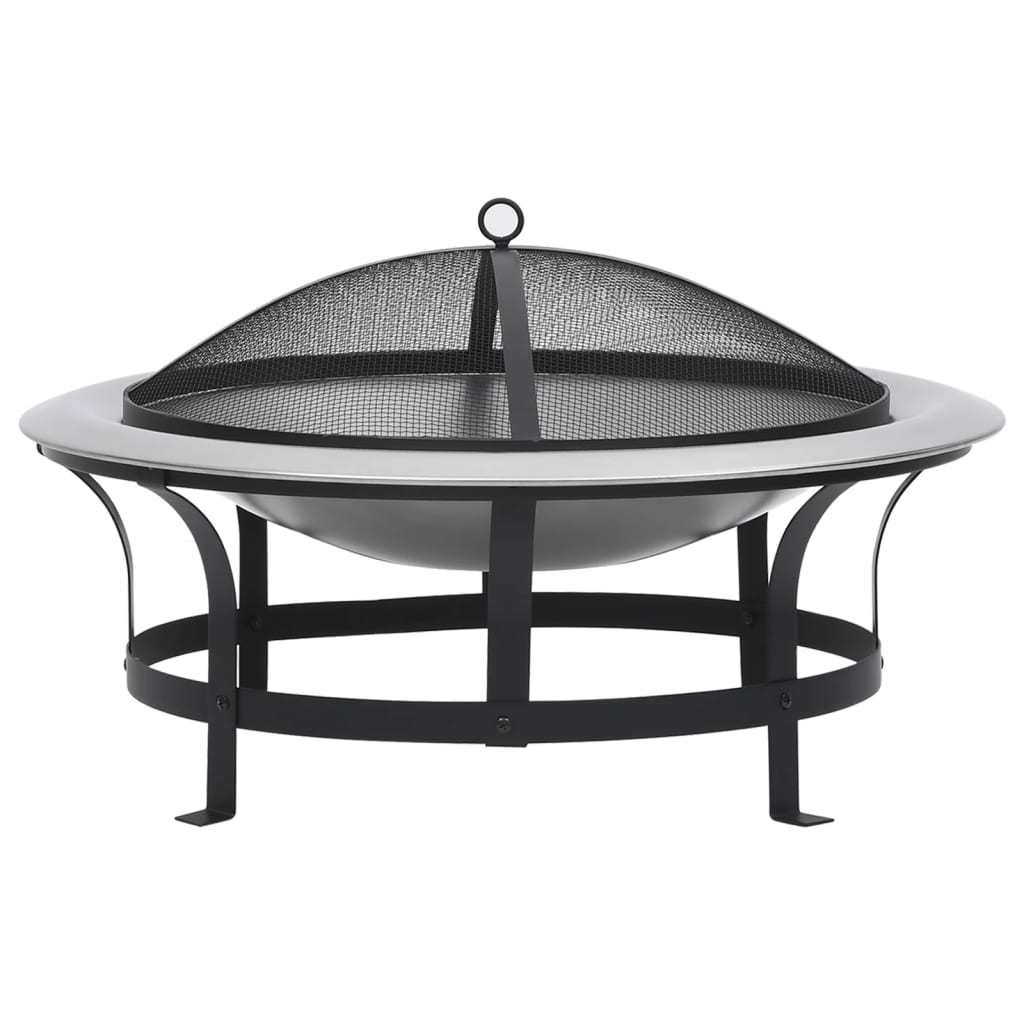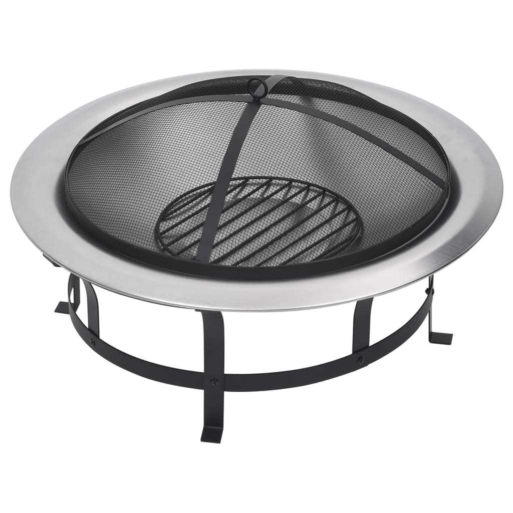 Outdoor Fire Pit with Grill Stainless Steel 29.9" - Black