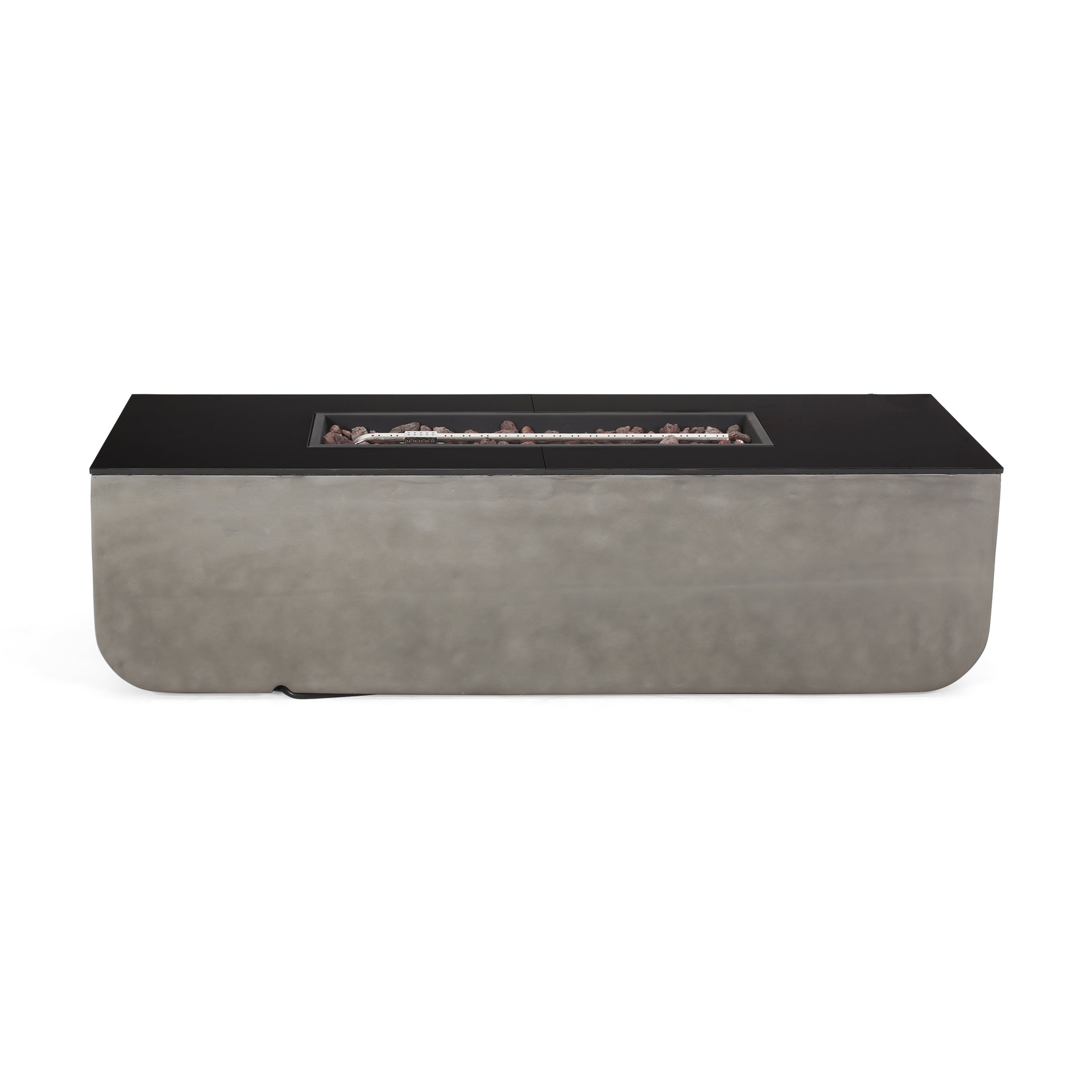 Outdoor Patio Concrete Fire table, Rectangle Gas Burning 56-Inch Fire Pit - 50, 000 BTU, Light Gray + Black - as Pic