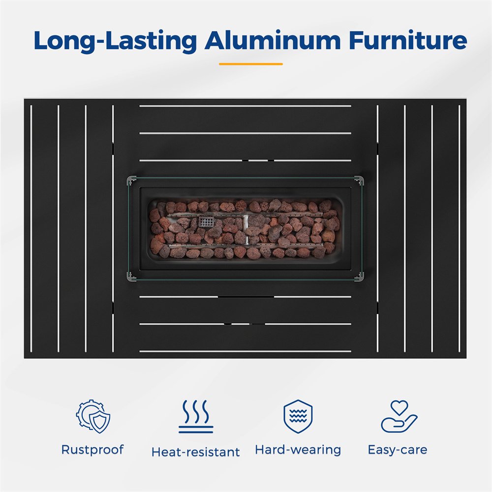 Product Design:This rectangle fire pit table is excellent for a medium to large group of people because of its perfect size and amazing 50,000 BTUs of heat output.