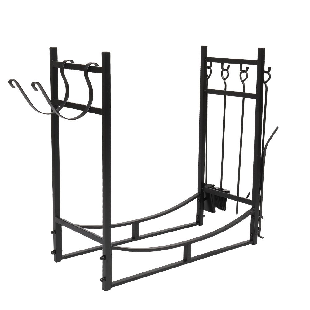 5.Integrated hooks on the stand create places to hang the included tongs, poker, broom, and shovel, to maintain the fire safely and easily