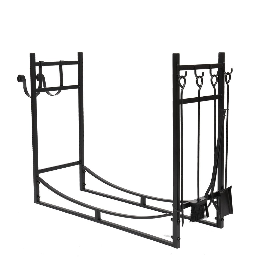 5.Integrated hooks on the stand create places to hang the included tongs, poker, broom, and shovel, to maintain the fire safely and easily